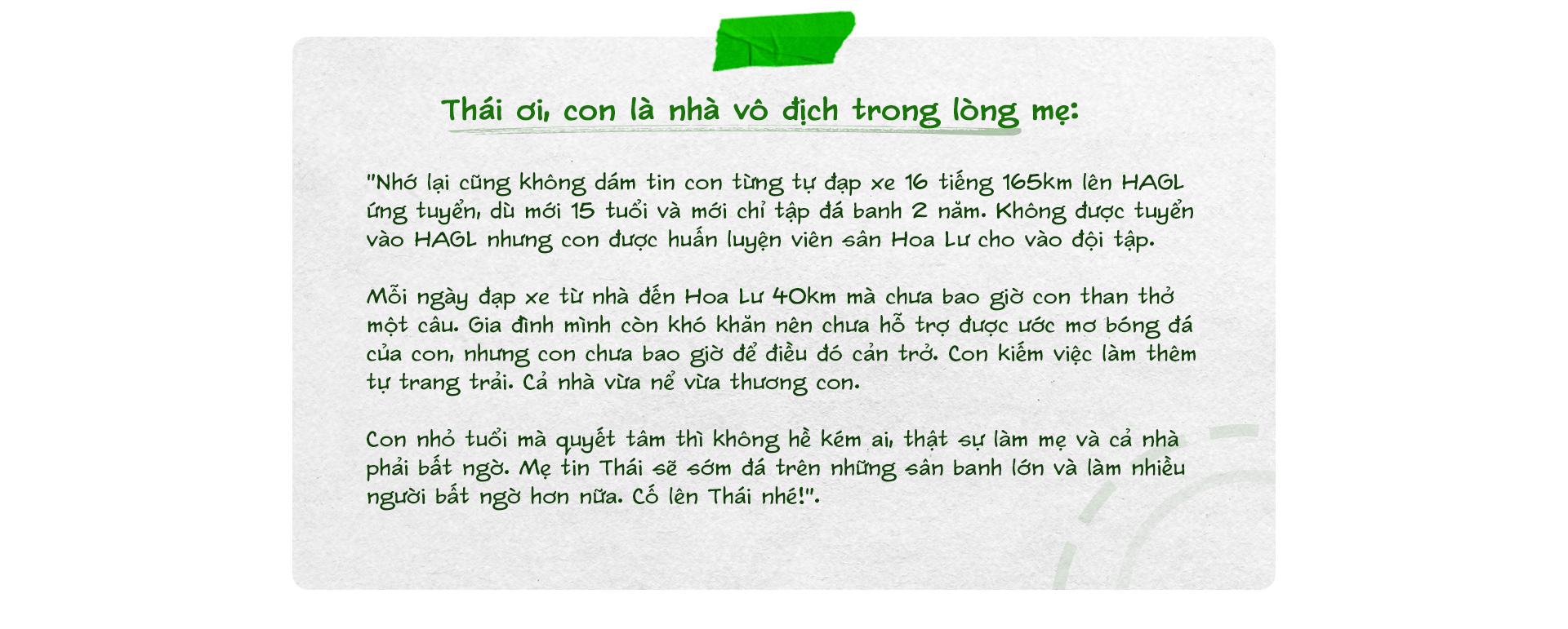 Nguyễn Văn Thái, một cậu bé quê Bạc Liêu theo cha mẹ mưu sinh ở Sài Gòn, mới biết đá bóng 2 năm đã tự mình đạp xe lên Gia Lai ứng tuyển Hoàng Anh Gia Lai (HAGL), 2 lần lỡ hẹn vẫn không thể bỏ bóng đá.