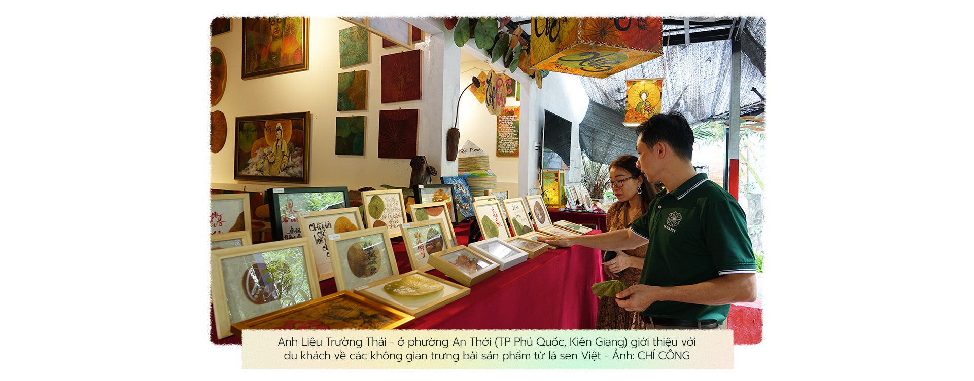 "Khi tôi làm ra sản phẩm đều hướng đến khách hàng. Khách nước ngoài biết đến cũng đặt mua tặng người thân, bạn bè nhiều lắm. Tạo không gian lá sen Việt này ở Phú Quốc, tôi mong muốn giới thiệu đến nhiều du khách trong và ngoài nước cũng như mở rộng thị trường xuất ngoại về dòng tranh lá sen, đèn sen này", anh Thái nhấn mạnh.