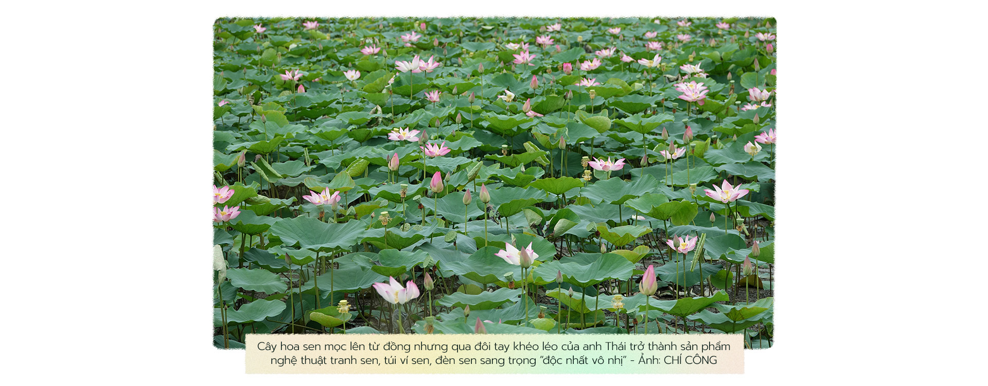Chia sẻ cơ duyên đến với sự chế tác lá sen, anh Thái kể năm 2012, trong quá trình đi tìm vật liệu thay thế thủy tinh về phục vụ trang trí, anh đến một cửa hàng và bắt gặp bức tranh được làm từ lá sen (do nước ngoài sản xuất). Từ đó anh đã nảy sinh ý tưởng làm những chiếc đèn lá sen "độc nhất vô nhị".