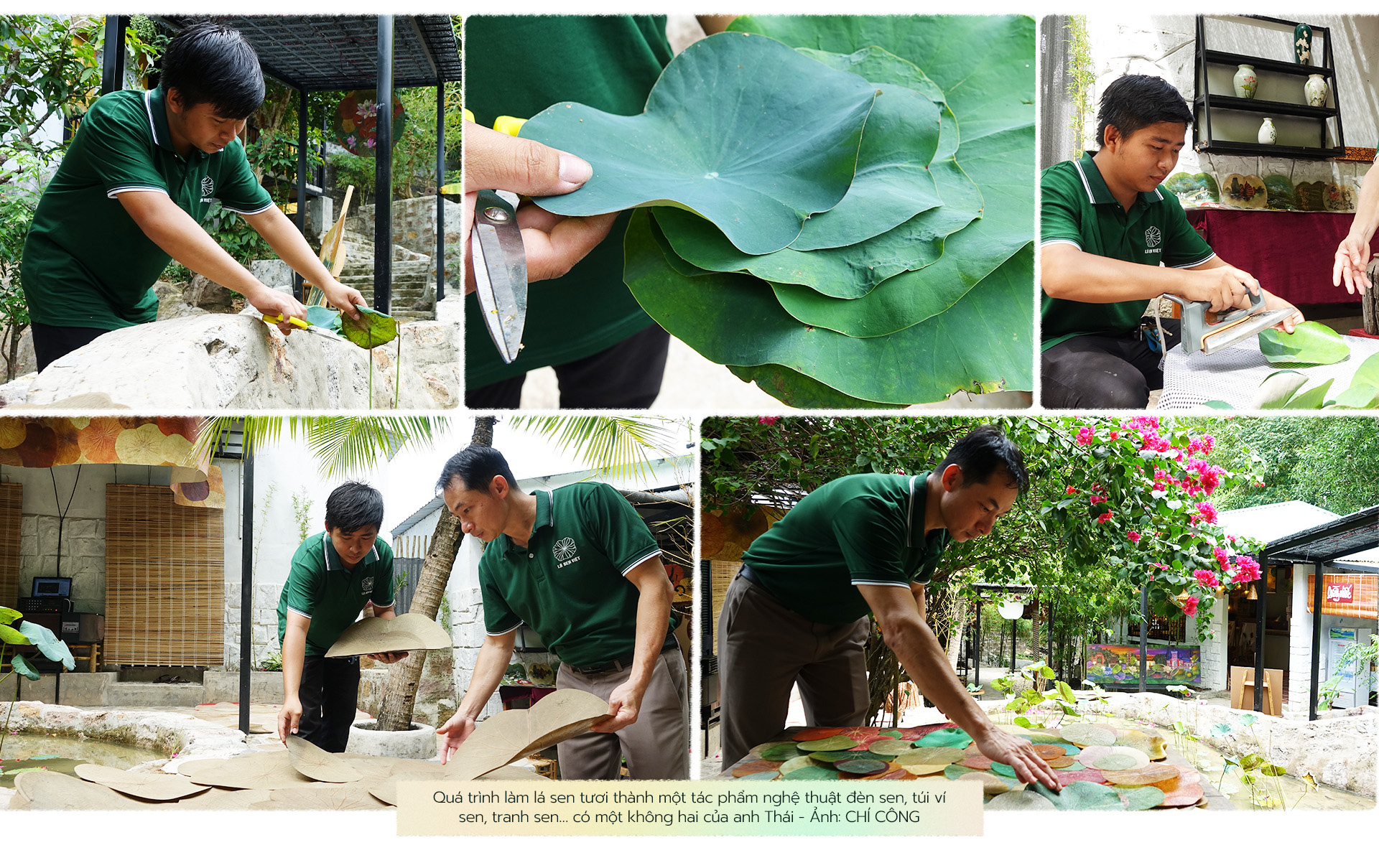 "Xuất phát từ đó, tôi đi nghiên cứu lá sen. Cái khó khăn lớn nhất lúc đó là xử lý lá sen sao cho giữ được nguyên hình lá", anh Thái nói.