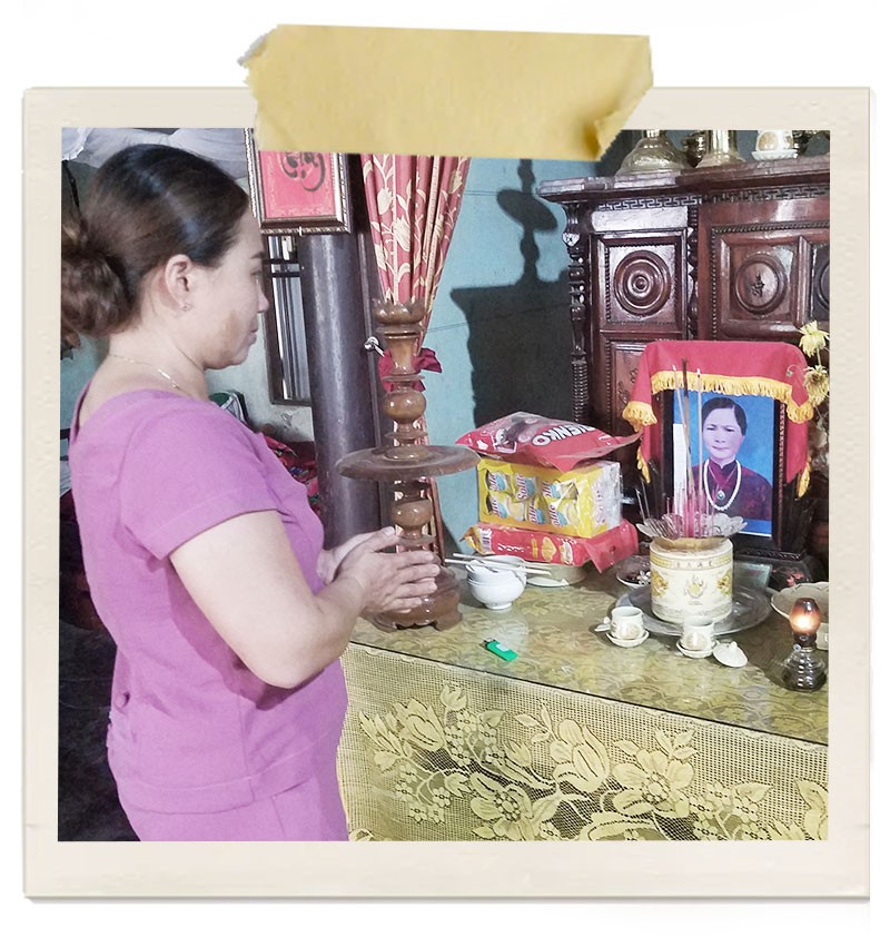 Cẩm học ngành Điều dưỡng, lịch học rất kín nên có khá ít thời gian về thăm viếng mẹ. Ngôi nhà của hai mẹ con ở vùng chiến khu Ba Lòng cũng đóng kín cửa. Nhưng lo mẹ không ai hương khói, Cẩm phải gửi nhờ bàn thờ mẹ ra nhà người bà con cách đó mấy cây số.