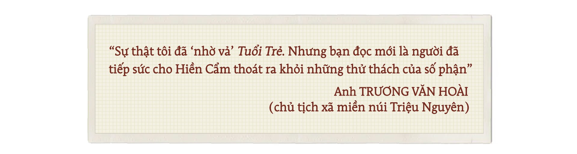 "Sự thật tôi đã ‘nhờ vả’ Tuổi Trẻ. Nhưng bạn đọc mới là người đã tiếp sức cho Hiền Cẩm thoát ra khỏi những thử thách của số phận", anh Hoài nói.