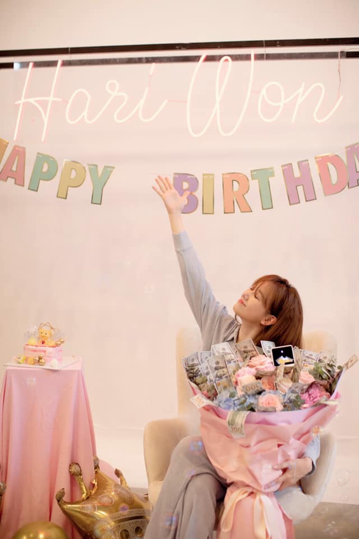 Hari Won được tặng bó hoa 'đồng tiền' vào tiệc sinh nhật giữa đêm