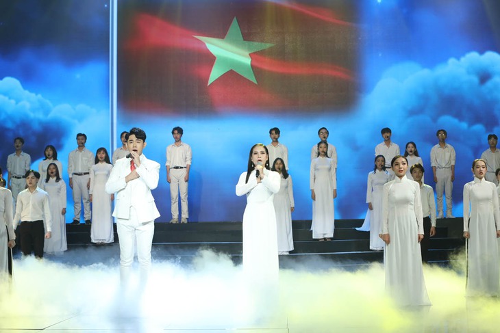 Trong khi đó, Trung Hiếu chứng minh khả năng làm chủ sân khấu cũng như giọng hát hào sảng, đĩnh đạc ở liên khúc Khát vọng – Đường chúng ta đi – Tiến quân ca.