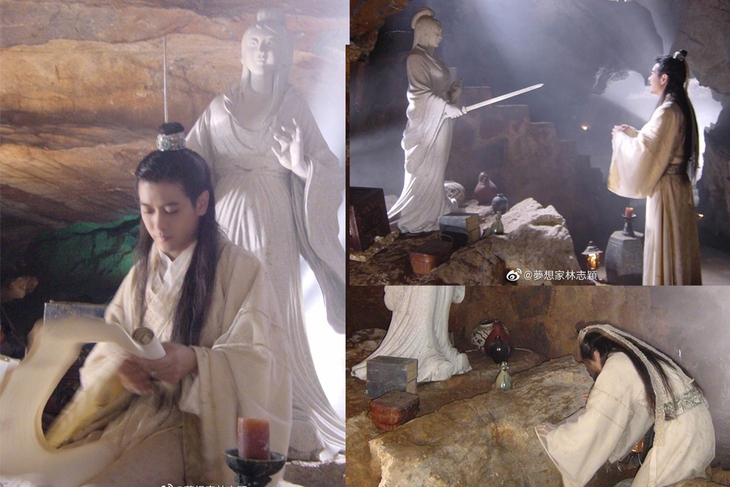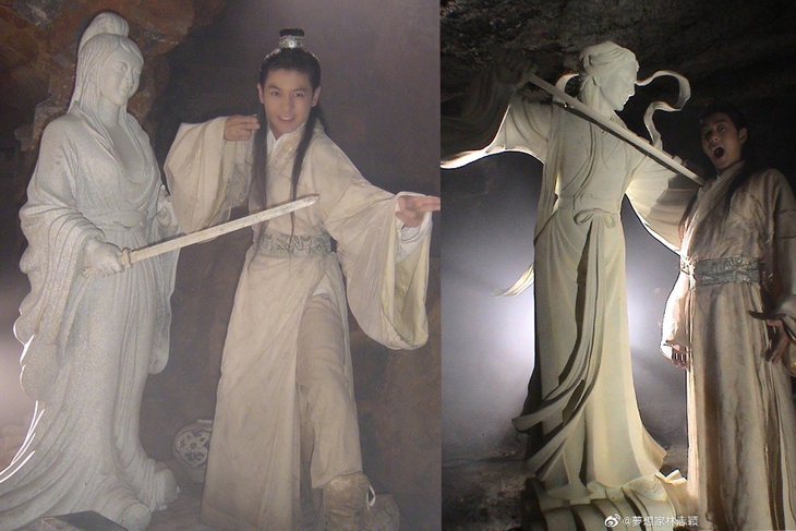 Bên cạnh những bức ảnh hậu trường trong hang động khi gặp bức tượng nữ thần, Lâm Chí Dĩnh còn chia sẻ những câu chuyện xung quanh cảnh quay: “Cảnh quay tôi gặp bức tượng tiên nữ trong hang động, chúng tôi thực sự đã quay hai lần.