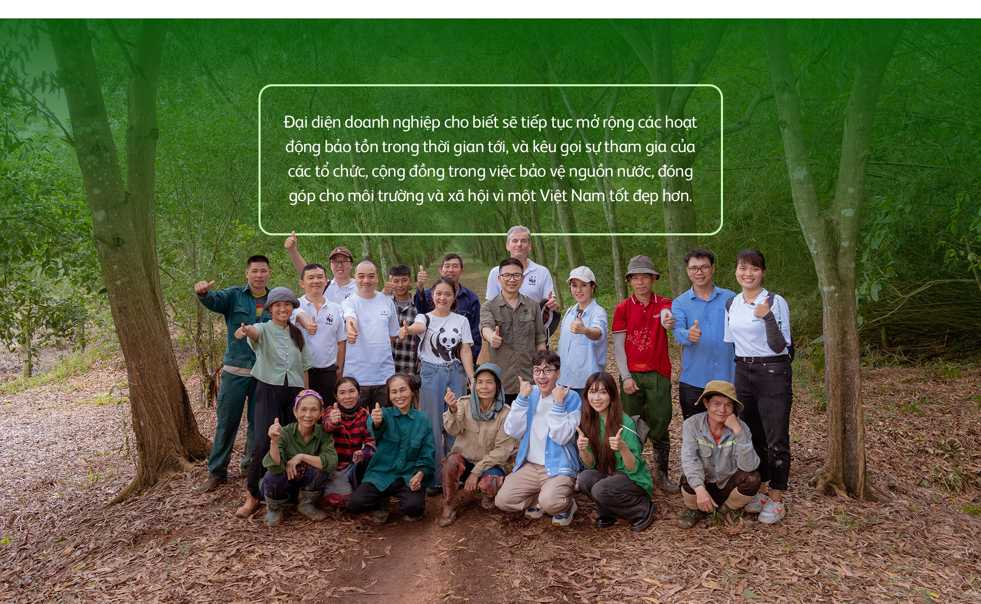 Thực tế, doanh nghiệp đang triển khai chương trình hợp tác cùng WWF-Việt Nam và các đối tác nhằm bảo tồn nguồn nước tại 3 lưu vực sông Hồng, sông Tiền và sông Đồng Nai, kéo dài từ 2022 - 2025. Với tổng vốn đầu tư 30 tỉ đồng từ Heineken Việt Nam, chương trình hướng đến mục tiêu bảo tồn 3 tỉ lít nước mỗi năm thông qua các hoạt động tư vấn thiết kế chiến lược quản lý hệ thống thủy văn, trồng và chăm sóc rừng tràm, cây bản địa, nuôi dưỡng và khoanh nuôi xúc tiến tái sinh rừng tự nhiên, cải thiện chất lượng nguồn nước, tổ chức tập huấn và truyền thông cho người dân địa phương.