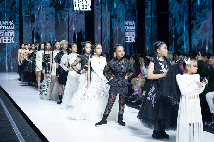 Góp mặt trong phần trình diễn bộ sưu tập Trúc của NTK Ivan Trần, không thể không nhắc tới những cái tên mẫu nhí “ruột” với nhà mốt như: Nguyên Đan, Khánh An, Kitty Minh Vy, Khổng Minh Phúc, Jenny Bảo Vy, Victoria Phương Trang…