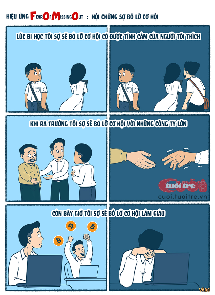 Nó cũng được định nghĩa là nỗi sợ bị hối tiếc vì có thể đang bỏ lỡ cơ hội giao tiếp xã hội, trải nghiệm mới lạ hoặc một khoản đầu tư sinh lời. Người ta sợ nếu không tham gia sẽ trở thành một lựa chọn ngu ngốc.