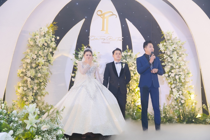 Tại hôn lễ cổ tích của mình, Hồ Bích Trâm đã nhiều lần bật khóc vì hạnh phúc cũng như cô và ông xã hơn 7 tuổi cuối cùng đã được cưới vì nhiều lần dời lịch.
