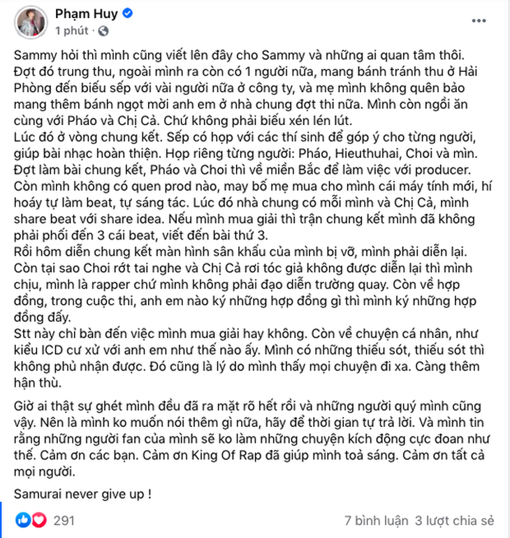Hồ Hoài Anh bình luận gây chú ý về việc ICD mua giải ở King of Rap