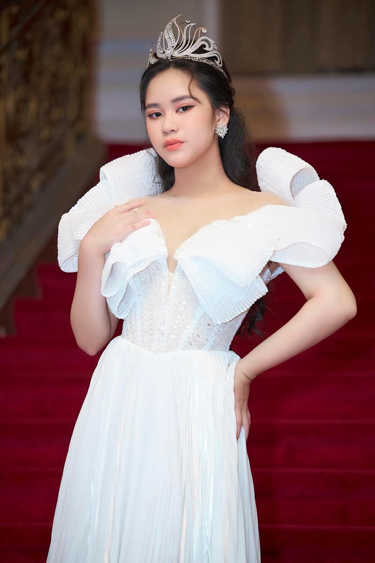 Bella Vũ rạng rỡ trong tà áo dài truyền thống - Ảnh: NVCCĐây là lần đầu tiên, Bella Vũ đảm nhận vai trò khách mời đặc biệt và giám khảo tại một cuộc thi quốc tế nên cô khá hào hứng.