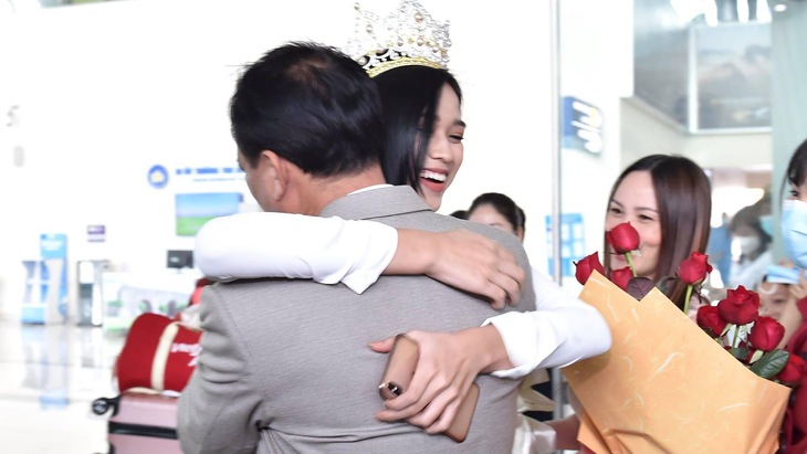 Hoa hậu Đỗ Thị Hà ôm chầm bố trong ngày đầu về quê sau đăng quang