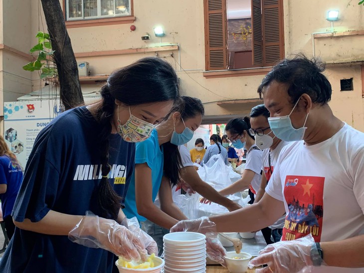 Hoa hậu Tiểu Vy chăm chỉ với công việc ở "Bếp ăn 0 đồng" từ những ngày đầu TP.HCM bùng phát dịch bệnh.