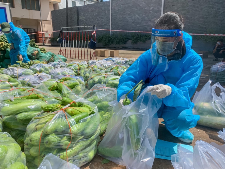 Á hậu Kim Duyên cũng liên tục tham gia các hoạt động thiện nguyện suốt mùa dịch. Người đẹp không ngại nắng nóng di chuyển và phân chia từng túi rau quả khổng lồ để làm quà tặng.