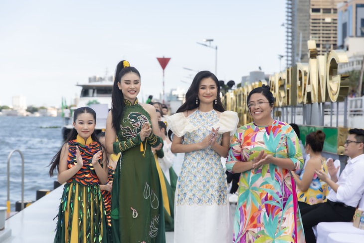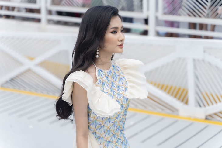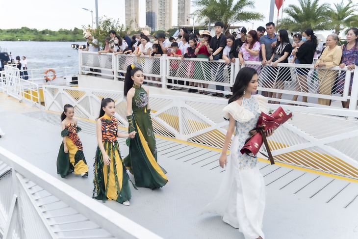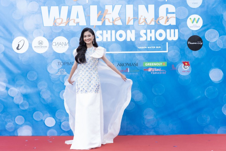 Hoa hậu Nguyễn Thanh Hà catwalk ở ga tàu thủy Bạch Đằng