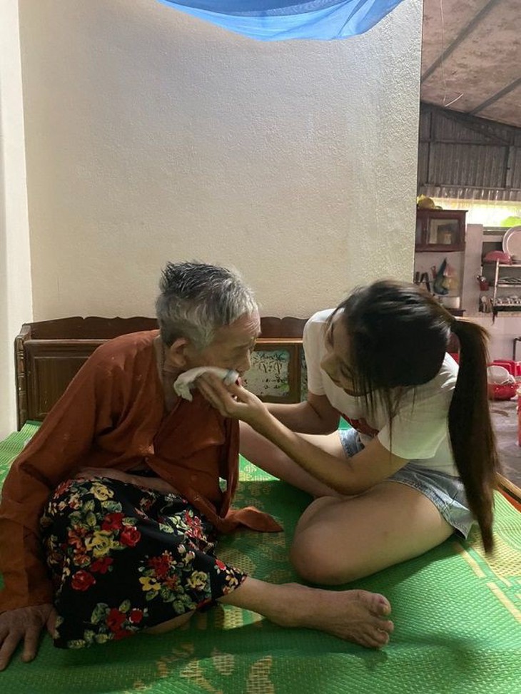 Đỗ Thị Hà bên ông nộiTheo đó, nghe tin ông nội phải nhập viện, Đỗ Thị Hà đã nhanh chóng về quê và đến thăm người ông kính yêu của mình. Việc ông nội phải nằm viện trong khi Tết đã đến cận kề khiến nàng hậu vô cùng lo lắng thương cảm.