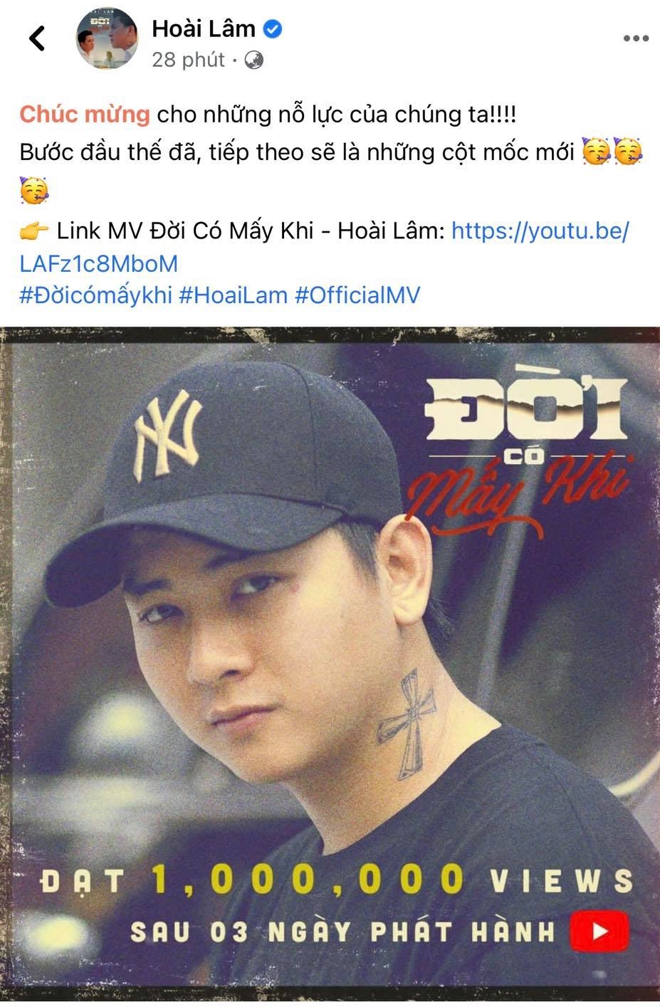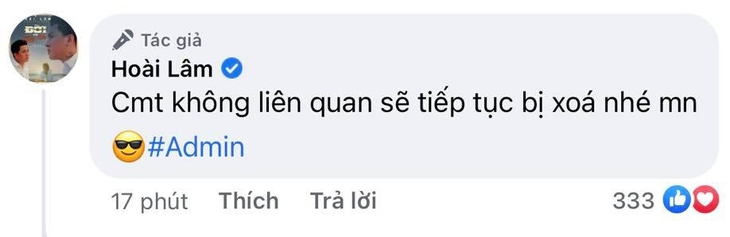 Có thể thấy, trên trang cá nhân lẫn fan page của Hoài Lâm đều không đả động đến chuyện tình cảm của vợ cũ. Động thái cách đây vài giờ của nam ca sĩ là đăng tải hình ảnh sản phẩm âm nhạc mới mà anh vừa ra mắt. Phía nam ca sĩ cũng vui mừng thông báo MV Đời có mấy khi của anh đã chạm mốc một triệu view sau ba ngày ra mắt.