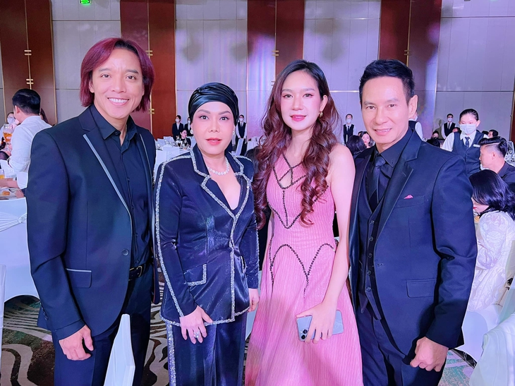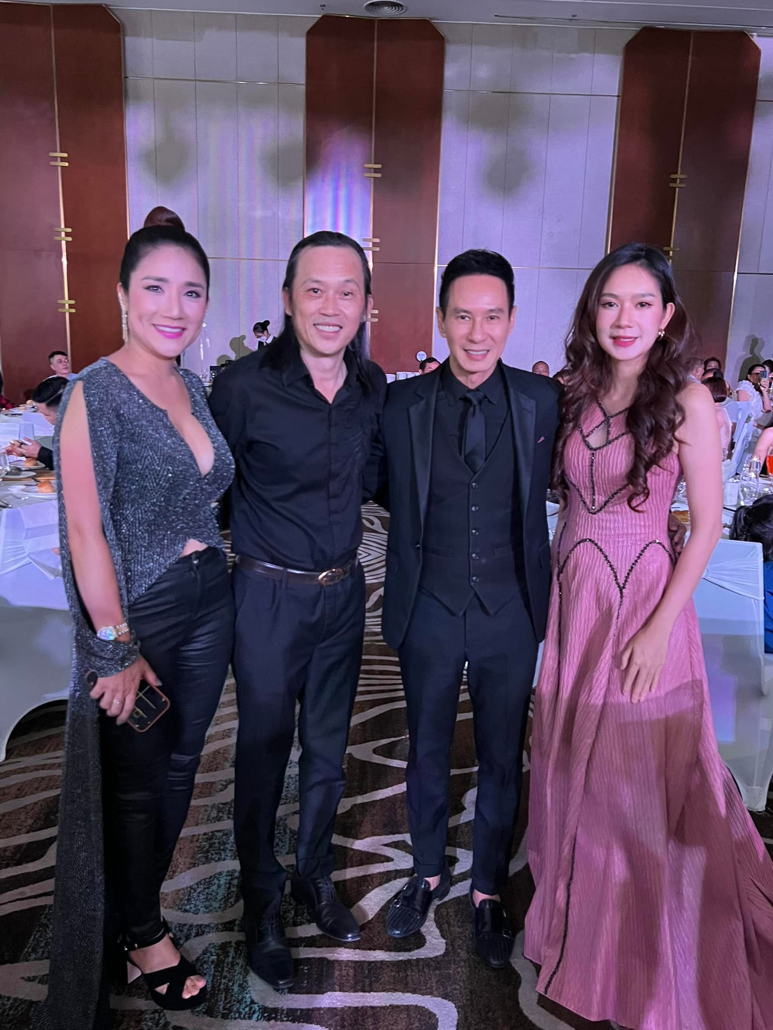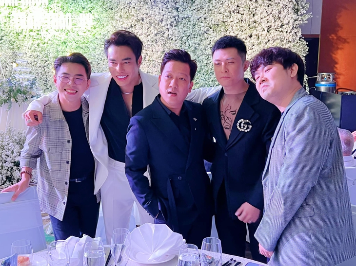 Hoài Linh xuất hiện chung khung hình với vợ chồng Lý Hải - Minh Hà và MC Cát TườngTheo đó, Hoài Linh gây chú ý khi cũng góp mặt tại tiệc cưới của đàn em. Nam danh hài mặc cây đen lịch sự, mái tóc dài buộc nửa đầu gọn gàng. Tuy có thể thấy rõ vóc dáng gầy gò hơn trước nhưng Hoài Linh vẫn giữ được thần sắc tươi tắn.