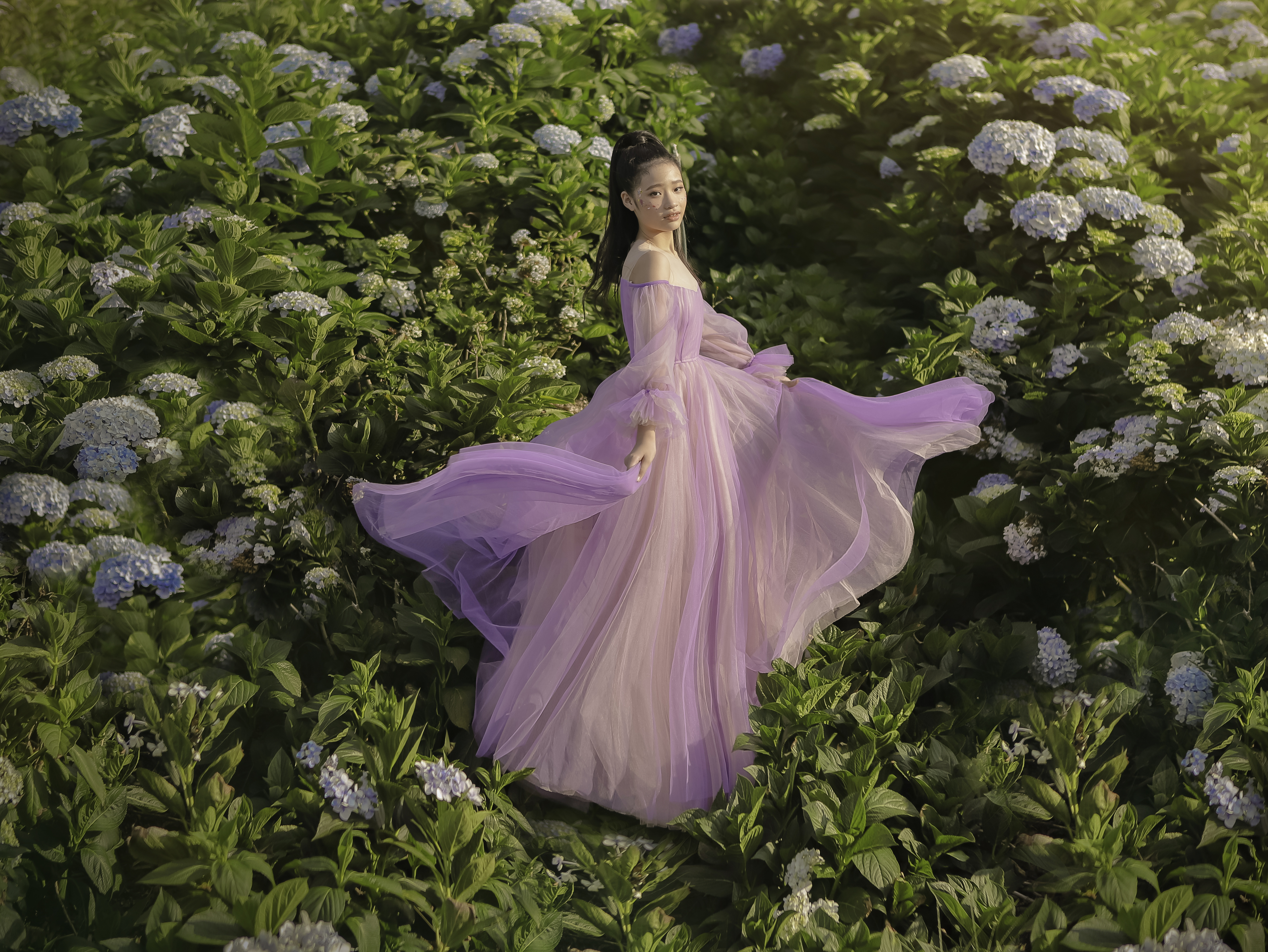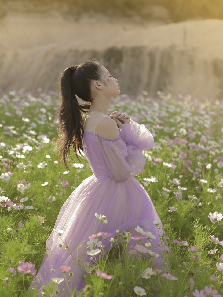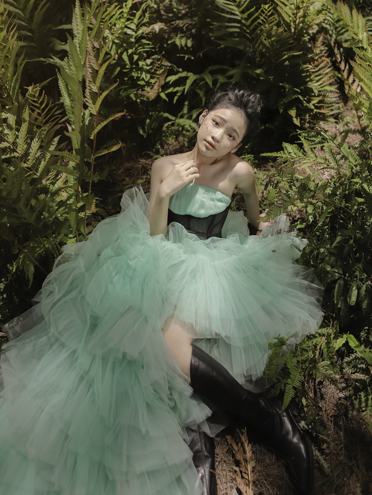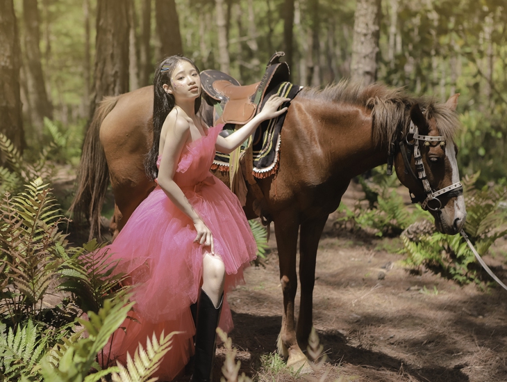 Ý nghĩ này của mẫu nhí Bảo Hà cũng khá đồng nhất với nhà thiết kế Nguyễn Minh Công cũng như định hướng của ê-kíp, cộng sự hợp tác cùng với cô bé. Đó là lý do vì sao mà bộ ảnh nàng công chúa cổ tích ở Đà Lạt lần này, ngoài việc pose dáng cùng những cây cỏ mong manh, những chiếc lá đẫm sương, những bông hoa bé xinh hay những đóa cẩm tú cầu rực rỡ, Bảo Hà còn có những shoot ảnh cực kỳ ấn tượng khi chụp ảnh với một chú ngựa cực kỳ cá tính.