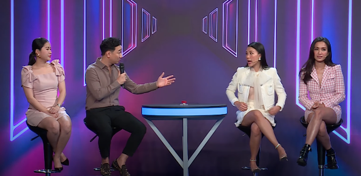 Đội chủ nhà (MC Thành Trung và Lâm Vỹ Dạ) quan tâm Hoàng Oanh, Ái Phương bằng những câu hỏi hóc búa