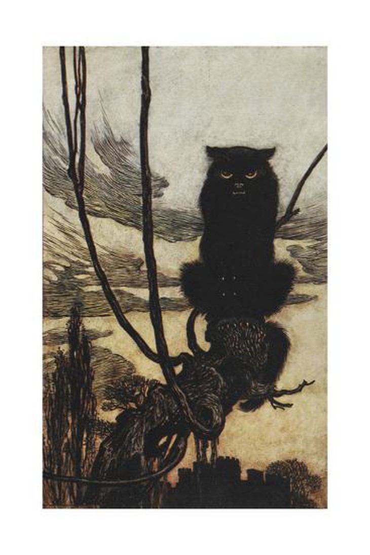 Ban ngày ả biến mình thành mèo, họa sĩ Arthur Rackham, minh họa truyện cổ Grimm.
