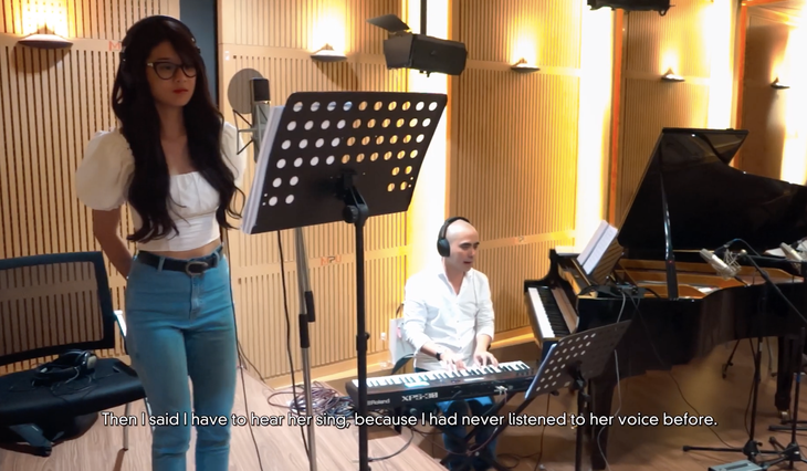 “Khi bộ phim nói sẽ có một cô bé sẽ hát nhạc phim, tôi nói sẽ phải nghe được cô ấy hát. Sau khi thử giọng xong, tôi yên tâm vì cô ấy hát rất là hay”, Đức Trí nhớ lại.
