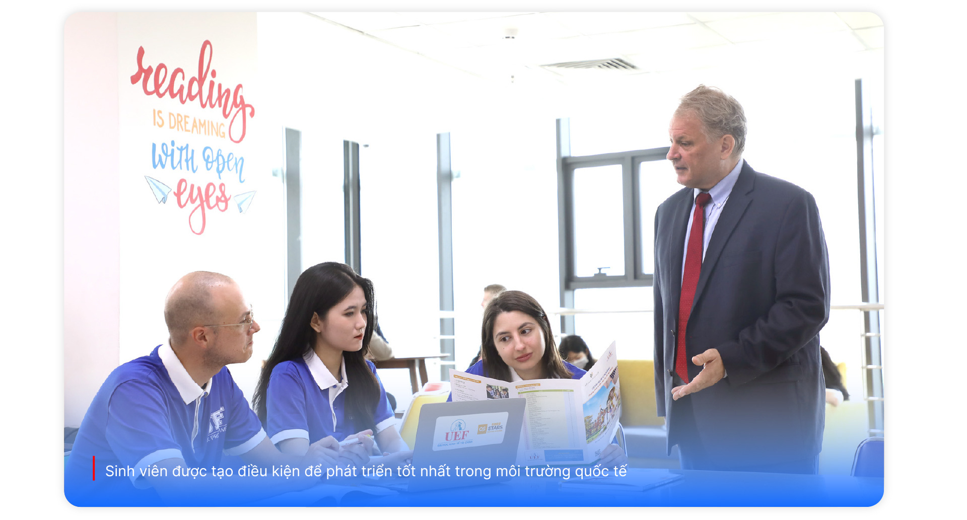Định hướng quốc tế hóa như UEF, sinh viên được học tập theo chương trình song ngữ quốc tế, hơn 50% thời lượng là tiếng Anh. Việc tiếp xúc cùng ngoại ngữ hằng ngày và theo từng cấp độ trong quá trình học tập, giao tiếp đảm bảo sinh viên nâng cấp khả năng tiếng Anh cho người học.