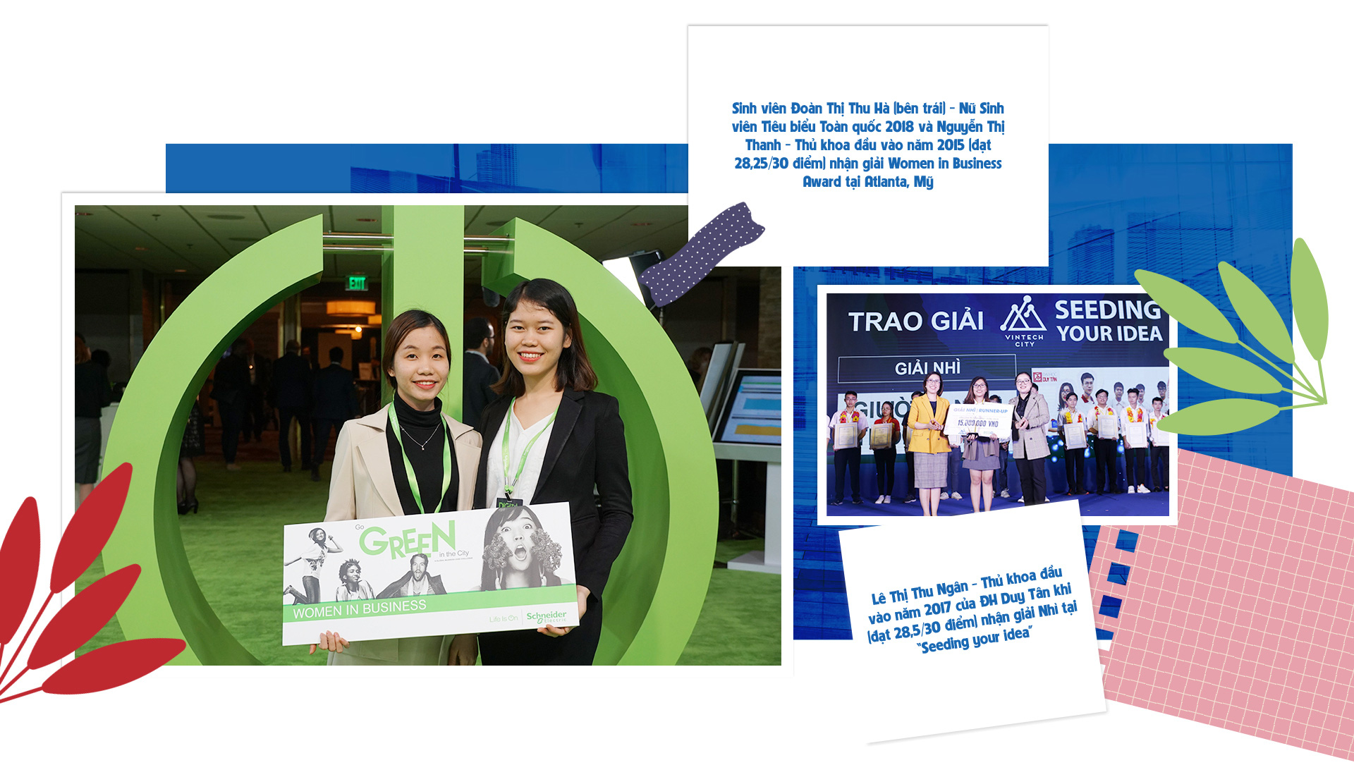 Cùng với Thu Ngân, có rất nhiều sinh viên khối ngành Kinh tế - Quản trị đã đạt những giải thưởng lớn với các sản phẩm khởi nghiệp, sản phẩm vì lợi ích cộng đồng như: