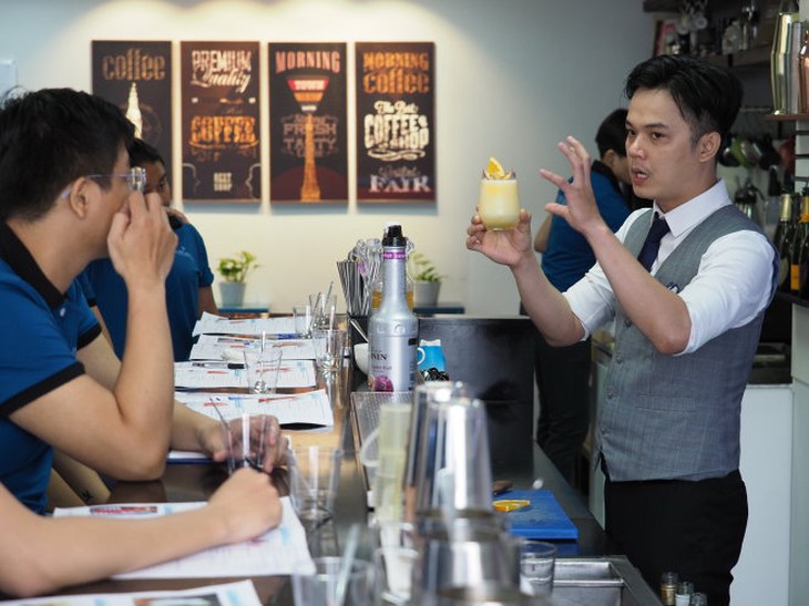 TTCT - Nổi tiếng trong thế giới pha chế đồ uống, là một bartender thành danh ở tầm mức quốc tế và nay đứng lớp dạy hàng ngàn học trò nhưng Phạm Đình Song chỉ có đúng một mảnh bằng lận lưng, đó là trung cấp quản lý nhà hàng… Phạm Đình Song giới thiệu với các bartender quốc tế món cocktail Vietnamese breakfast.Cách đây một tháng, Tuổi Trẻ cùng Tổng cục Dạy nghề cùng tổ chức tọa đàm về “Chọn trường nghề cho lối vào đời”. Hôm ấy, Phạm Đình Song tham dự. Anh kể chuyện đời, chuyện nghề của mình, nhưng kết thúc với một lời kêu gọi giới báo chí: “Các anh chị đừng tạo ra ảnh hưởng không hay cho giới trẻ khi quá đề cao hai tiếng ĐAM MÊ trong chuyện hướng nghiệp”.Tôi tìm đến Pha chế Education - nơi Song mở lớp đào tạo nghề pha chế các loại thức uống được vài năm nay, cung cấp hàng ngàn nhân viên cho các chuỗi cà phê, quán bar, nhà hàng, khách sạn - cũng vì sự tò mò sau câu nói ấy.Anh có vẻ dị ứng với hai từ ĐAM MÊ, có thể cho biết tại sao không?- Tôi dân Hóc Môn. Ba tôi làm bảo vệ ở Bưu điện TP, mẹ ở nhà làm nội trợ. Khi tôi học cấp 3, ba mẹ tôi chỉ muốn con mình theo học ngành công an hoặc vào đại học để kiếm cái bằng kỹ sư. Nhưng hồi nhỏ, tôi chỉ mê âm nhạc, sát ngày thi tốt nghiệp THPT, tôi vẫn chưa biết mình sẽ học ngành nào, nghề gì.Thế rồi, một người bạn thân rủ tôi đăng ký học nghề quản lý nhà hàng khách sạn ở Trường trung cấp nghề tư thục du lịch Khôi Việt. Bạn rủ nhưng đến ngày khai giảng lại bỏ, tôi một mình bơ vơ nhưng vẫn vào học vì tiếc tiền học phí đã đóng.Không ngờ khi vào học thì lại thích, mà thích nhất là môn pha chế cocktail. Một khi đã thích, cộng thêm tinh thần khát khao tự lập, tôi lao vào tập luyện như điên, học ké, học lóm cả các anh chị khác trong trường.Nhìn lại 2 năm học ấy, tôi rút ra một điều mà tôi cho là vô cùng quan trọng: vai trò của người thầy. Tôi nhớ như in lời thầy hiệu trưởng, cũng là chủ trường, thường nói “vào đây không chỉ học mà còn phải chơi. Em nào không chịu chơi thì mời ra”! Một đứa ham chơi như tôi mà gặp người thầy luôn bắt học và học suông thì chắc thua.Sau này, tôi mới hiểu ý của thầy là những cuộc chơi như thi hiphop, thi thời trang, thi hoa hậu... trong trường là nhằm giúp học sinh khắc phục một điểm yếu của người Việt, đó là sự thiếu tự tin. Nói thật, gặp ai cũng rụt rè, nói năng lắp bắp, ăn mặc thì lè phè... thì khó mà làm việc được trong ngành du lịch, quản lý nhà hàng, khách sạn.Nơi học tập được thầy thiết kế y như các nhà hàng, khách sạn, quán bar thứ thiệt chứ không làm cho lấy có như nhiều nơi khác. Một người thầy có tâm như thế chắc chắn sẽ nâng bước bạn lên trên con đường vào đời...Cứ thế, tôi lao theo luyện và làm riết rồi mới đâm mê cái nghề này. Chứ nói thật, tôi tin là không ai đam mê một thứ mà mình chưa biết, chưa thật am hiểu về nó. Vì vậy, xã hội, truyền thông quá đề cao sự đam mê khi người trẻ còn chưa biết gì về lĩnh vực dự tính đi theo, theo tôi là một điều tai hại.Một ngôi trường tốt, gặp được người thầy có tâm thì sẽ có nhiều học trò thích. Thích rồi thì những học trò có ý chí tự lập sẽ lao vào học, rèn luyện để tồn tại, để thể hiện bản thân; phải dăm bảy năm sau khi làm nghề, làm đến mệt phờ người mà không bỏ nghề, khi ấy thì người ta gọi là đam mê.Phạm Đình Song được gọi là "ông thầy trẻ" với sự say mê nhiệt huyết trong lớp dạy pha chế của anh. (Ảnh: HT)Giờ thì gia đình Song đã hài lòng?- Thú thật là ba mẹ tôi giờ cũng không biết tôi đang làm gì. Những người lớn ở Hóc Môn mấy ai biết bartender, flair bartending, barista là gì, nên tôi cũng không nói nhiều về công việc của mình. Trong những ngày đi học nghề, tôi về nhà cứ ôm mấy cái chai tập tung hứng suốt, chỉ có mỗi bà ngoại ủng hộ - một sự ủng hộ vì tình thương cháu chứ không phải vì bà hiểu nghề này là gì.Câu chuyện của gia đình là một vấn đề khiến tôi suy nghĩ rất nhiều. Tiếp xúc với hàng ngàn học viên, tôi thấy đa số người Việt bảo bọc con quá kỹ. Có nhiều phụ huynh tìm tới tận trung tâm của tôi chỉ để xin tôi đừng bắt con họ dọn dẹp, vệ sinh quầy bar, ly tách...Nếu ít được bảo bọc, quan tâm thì trong con mắt đa số người Việt là một sự bất hạnh; nhưng thà ít bảo bọc để con cái tự lập trong cuộc đời, có ích cho xã hội còn hơn là đưa cho xã hội một công tử bột, sống bám víu, không có chí lập thân.Phạm Đình Song dạy trong lớp pha chế đồ uống tại Pha chế Education. Ảnh: H.T.Tôi xem trong bảng thông báo treo ở Pha chế Education thấy khá nhiều thông tin tuyển dụng nhân viên pha chế thức uống, một điều khá vui trong thời COVID-19 này. Tuy nhiên, mức lương có vẻ không hấp dẫn cho lắm khi chỉ bình quân khoảng 5 triệu đồng/tháng?- Đó là lương cứng cho người mới, chưa t