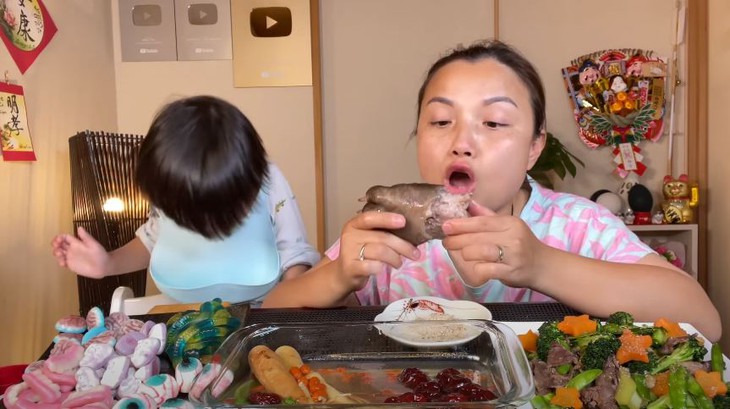 Ở video mới nhất, chỉ sau chưa đầy 24 giờ đăng tải nội dung "chân gấu hầm sâm", Quỳnh Trần cho giới thiệu đến đoạn clip "cá mập cuốn bánh tráng".