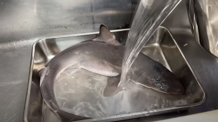 Được biết, đây là chú cá mập có được từ chuyến đi câu của gia đình Quỳnh Trần cùng người bạn. Trước đó, đoạn clip đi câu có một số hình ảnh khiến khán giả phản ứng, nhưng không quá kịch liệt.