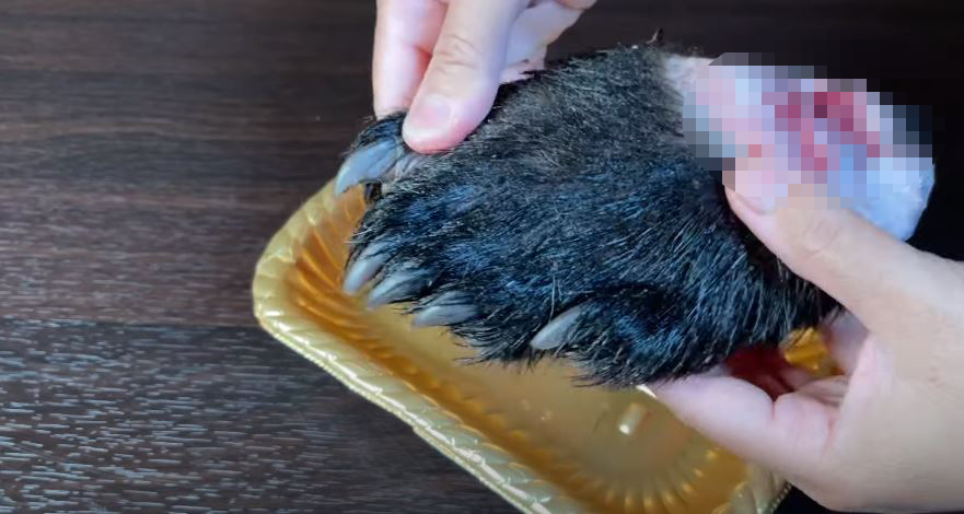 Nguyên liệu cho món hầm của Quỳnh Trần là... chân gấu. (Ảnh chụp từ clip)Với video làm "chân gấu hầm sâm", Quỳnh Trần cho biết nguyên liệu này được bày bán hợp pháp tại Nhật, không vi phạm bất kỳ quy định nào cả. Theo đó, chiếc chân gấu còn nguyên lông lá và móng này được nhập khẩu từ Trung Quốc, giá thành khoảng 1 triệu đồng.