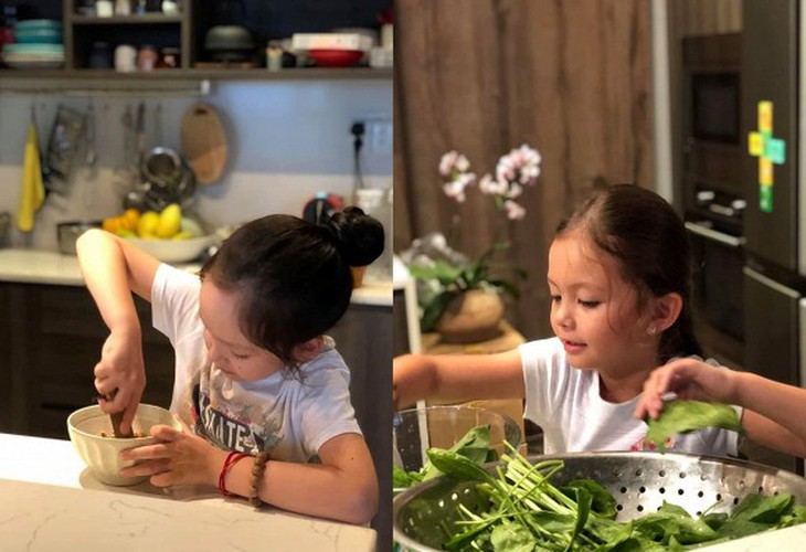 Nữ diva tạo cơ hội cho các con học tính tự lập bằng cách tự làm các món ăn nhẹ mang theo. Bên cạnh đó, để kéo các con ra khỏi việc dán mặt vào màn hình, cô cho hai bé tham gia các hoạt động ngoài trời, như tập cưỡi ngựa.