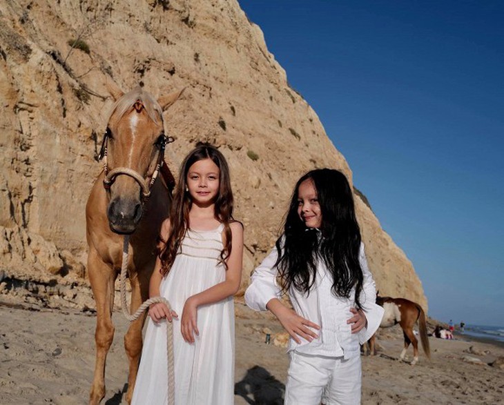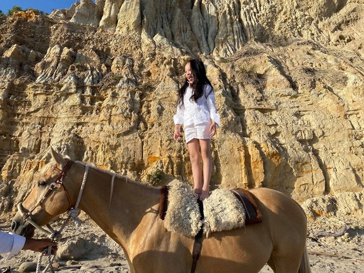Hồng Nhung cho hai con tập cưỡi ngựa để không buồn chán nhốt mình ở nhà tránh dịch