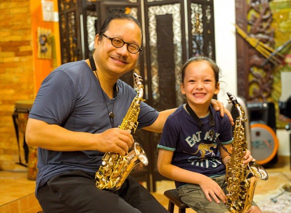 Trưa 4-11, Hồng Nhung chia sẻ ảnh cho con trai theo học kèn với nghệ sĩ saxophone nổi tiếng của Việt Nam - Trần Mạnh Tuấn.