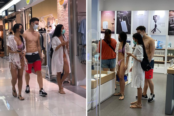 Hai cô gái diện bikini cùng chàng trai bán nude "náo loạn" mạng xã hội xứ Đài.Những hình ảnh gây xôn xao mạng xã hội xứ Đài này được trang Ettoday chụp tại trung tâm thương mại Global Mall Pingtung Store (huyện Bình Đông, phía nam Đài Loan).
