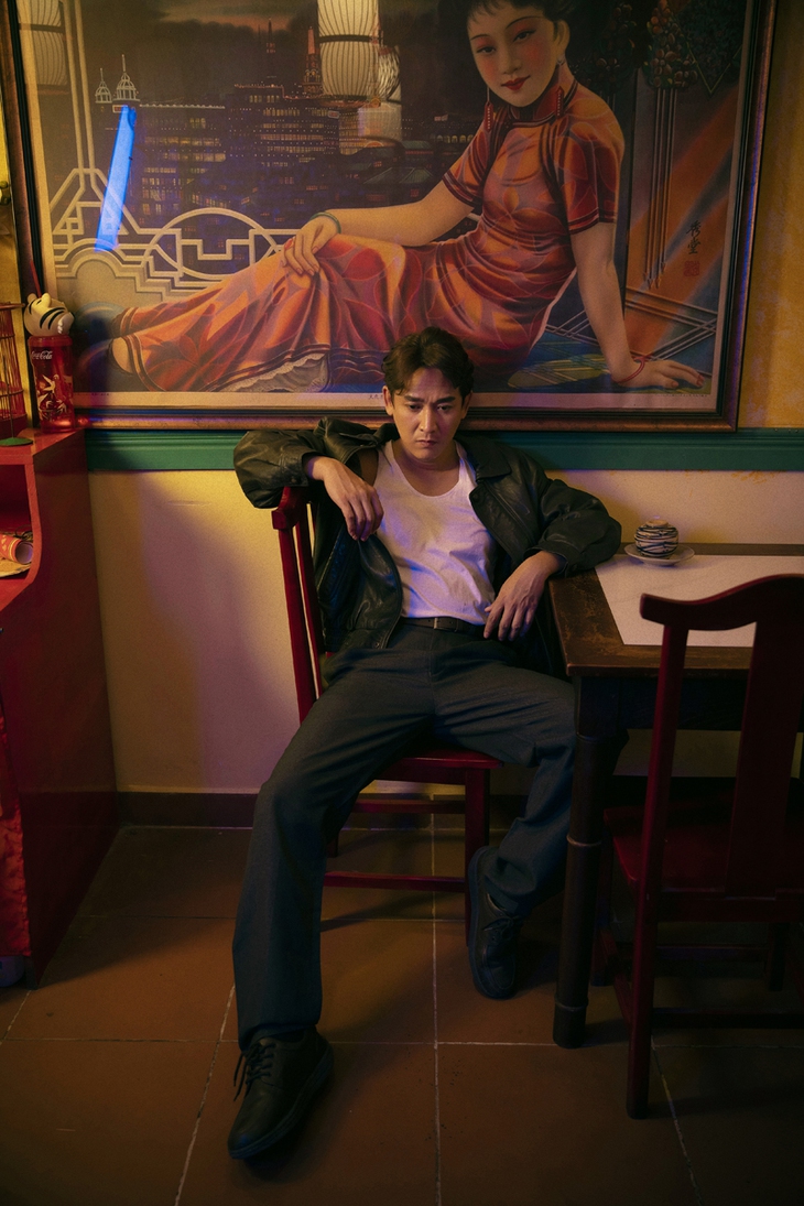 Khác với hình ảnh soái ca diện vest lịch lãm, bộ ảnh thời trang mang phong cách Hong Kong thập niên 90 cũng rất phù hợp với phong cách vốn có của nam nghệ sĩ. Sự hòa quyện giữa vẻ cổ điển của thời trang và nét diễn đậm chất điện ảnh của anh tạo nên dấu ấn riêng.