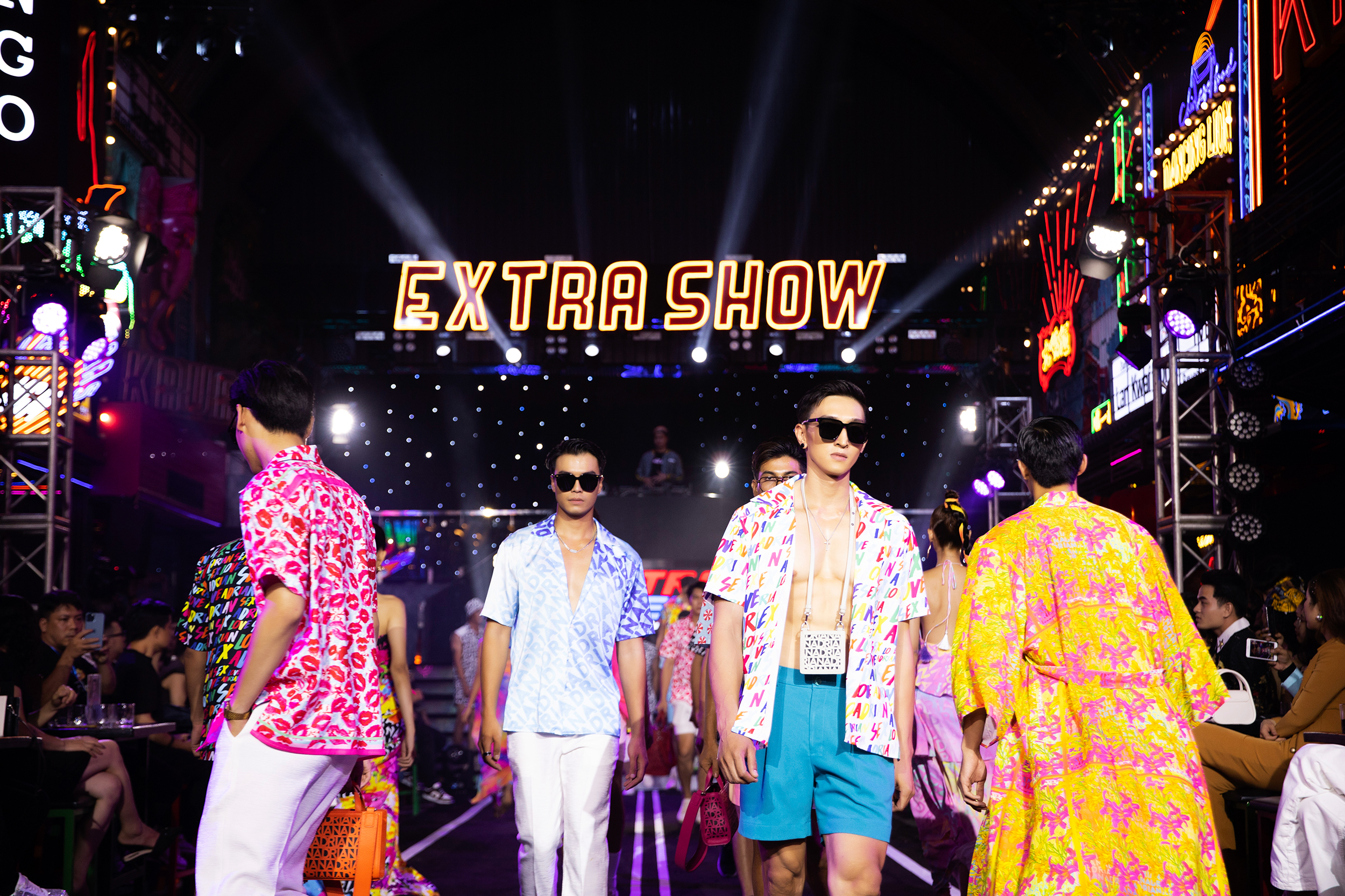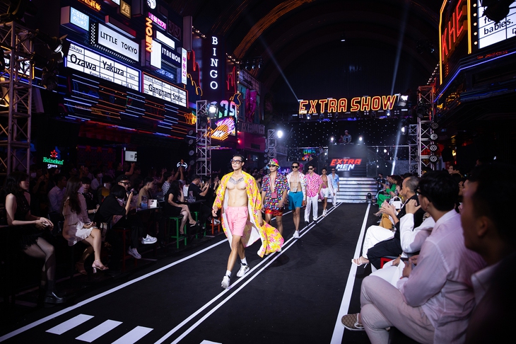 Những mẫu thiết kế rực rỡ sắc màu của Adrian Anh Tuấn - Ảnh: KIẾNG CẬNExtra Men Show là show diễn tâm huyết được đạo diễn thời trang Nguyễn Hưng Phúc dàn dựng công phu, trong không gian hiện đại kết hợp âm thanh, ánh sáng, như một buổi tiệc về đêm dành cho người mộ điệu thời trang.