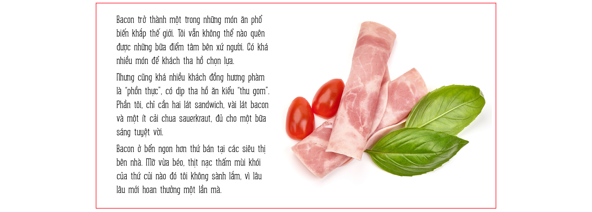 Bacon chẳng hạn, là thứ thực phẩm thường muối bằng thịt nây hoặc lưng heo rồi đem xông khói.