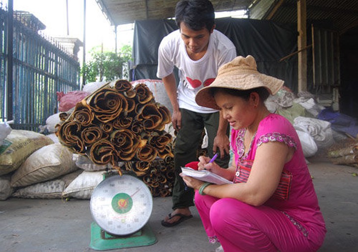 TTCT - Không như cư dân những vùng quế khác đã sao nhãng trồng quế khi vỏ loại cây dược liệu và hương liệu này bị tụt giá mạnh, người Cor ở Trà Bồng, Quảng Ngãi lúc nào cũng trồng quế. Thậm chí chưa lúc nào họ trồng quế nhiều như vài ba năm trở lại đây. Phóng to Phơi quế Trà Bồng loại miếng lớn và dày được căng trên khuôn để làm hàng thủ công mỹ nghệ - Ảnh: H.V.M. Từ thị trấn Trà Xuân (huyện Trà Bồng) đi theo đường liên tỉnh Trà Bồng - Trà My chừng hơn cây số đã ngửi được mùi vỏ quế từ những vựa buôn quế bên đường phả ra thơm lừng. Không còn cảnh gùi cõng, thồ chở quế bằng xe đạp, người Cor trong vùng nay đều dùng xe máy chở quế đến vựa bán. Nhiều người buôn quế đã thuê xe tải đưa quế mua được từ những thôn làng xa khuất đến bán lại tại vựa. Bên “chợ quế” khá nhộn nhịp này là những trại ươm với hàng triệu cây quế con đến tuổi nhổ trồng. Trồng nhiều để cải thiện cuộc sống Mưa lâm râm, vậy mà đến giữa trưa ông Hồ Văn Sâm mới từ rẫy xa về nhà vì “phải ráng dọn xong đất để mấy hôm nữa đưa cây quế xuống”. Ngồi bên bộ bàn tươm tất trong ngôi nhà xây khang trang cạnh chân núi, người nông dân 54 tuổi này không giấu được niềm phấn chấn khi nói về việc trồng quế: “Năm nay tui dọn đất trồng 5.000 cây, bù cho năm ngoái chỉ trồng có 2.000 cây. Tui còn phải giúp đứa con trai mới ra riêng trồng 3.000 cây nữa. Không riêng gì ở xã Trà Thủy mình, khắp Trà Bồng mấy năm nay ai cũng trồng quế nhiều”. Sau khi đã bán hơn 2 tấn quế để có tiền thêm vào làm ngôi nhà mới hồi năm 2009, rồi các năm 2010, 2011 mỗi năm bán gần cả tấn quế, rẫy quế của ông Sâm đến nay vẫn còn khoảng 10.000 cây, trong đó phân nửa số cây đã có thể khai thác. “Tiền người Cor cất trong cây quế” - ông Sâm ví von. Cũng như hầu hết người Cor ở Trà Bồng, mỗi khi cần tiền trang trải cuộc sống là ông Sâm lại lột quế mang đến vựa bán. Phóng to Anh Hồ Văn Nam bán quế tươi cho chủ vựa quế ở xã Trà Sơn (huyện Trà Bồng) - Ảnh: H.V.M. Không nản lòng khi thấy giá quế xuống thấp, người Cor ở Trà Bồng luôn bền lòng với việc trồng quế. Ông Hồ Viết Mật, 59 tuổi, cho rằng dù giá quế lâu nay “nhích xuống chứ không nhích lên”, chừng năm năm nay người Trà Bồng trồng quế nhiều hơn thời trước. “Rẫy quế của tui còn khoảng 30.000 cây lớn có nhỏ có. Năm nay tui sắp trồng thêm 10.000 cây. Giá quế rẻ thì mình phải trồng thêm nhiều để có nhiều quế mà bán đặng có nhiều tiền” - ông Mật nói. “Lập luận” của ông Mật, một trong số ít người xây được ngôi nhà ngói lớn ở vùng cao Trà Bồng hồi đầu thập niên 1990, cũng là suy tính của cư dân đất quế Trà Bồng. Đáng nói là lớp trẻ ở đây đều hăm hở với việc trồng quế. Anh Hồ Văn Chung, cư dân xã Trà Thủy, đã dọn xong rẫy để chừng vài tuần nữa là xuống đất thêm 9.000 cây quế. Chàng trai 37 tuổi mới vừa tân gia ngôi nhà xây với khoảng 400 triệu đồng hồ hởi: “Ông cha mình dựa vô cây quế để sống, đến đời mình phải dựa vô cây quế để khá lên. Tui còn trên rẫy khoảng 15.000 cây quế 2-10 tuổi, lúc nào cần tiền là có thể lột bán lần”. Theo ông Hồ Văn Thái - 60 tuổi, một trong những người trồng nhiều quế ở xã Trà Hiệp, người Cor thường trồng quế dày để trừ cỏ lúc đầu, sau đó tỉa dần, đến khi cây quế chừng 7-8 tuổi lại tiếp tục tỉa, những cây còn lại sau đó sẽ nhanh lớn hơn, cho sản lượng cao hơn. Cây khoảng sáu năm tuổi thu hoạch trung bình 5-10kg quế tươi, 10 tuổi được 15-20kg, trên 20 tuổi có thể từ 25-30kg. Chỉ từ 20 năm tuổi, cây quế mới cho hạt giống ổn định hằng năm. Phóng to Ông Hồ Viết Mật (thôn 3, xã Trà Thủy) lột vỏ những cây quế sáu năm tuổi ở rẫy quế của mình - Ảnh: H.V.M. Thêm niềm tin từ thương hiệu “Cùng với nỗ lực của bà con, những năm gần đây huyện đã hỗ trợ mỗi năm 2-3 triệu cây quế giống cho hộ nghèo từ các nguồn kinh phí có được, nhờ vậy lượng quế trồng ở Trà Bồng đã tăng lên khả quan. Huyện đang tính đến kế hoạch đầu tư lâu dài cho cây quế như tìm cách giúp hộ cận nghèo vay vốn trồng quế, bảo vệ chủng quế Trà Bồng, hạn chế thu hoạch quế non để tăng chất lượng quế cũng như có nguồn hoa quế dồi dào nhằm thu được sản phẩm mật ong” - ông Hồ Văn Thế, chủ tịch UBND huyện Trà Bồng, nói.Lượng quế trồng của cư dân Trà Bồng tăng mạnh mấy năm nay ngoài nỗ lực của cư dân còn có phần hỗ trợ của Nhà nước. Ông Võ Sĩ Phi, chuyên viên Phòng Nông nghiệp và phát triển nông thôn huyện Trà Bồng, cho biết: “Nhờ lồng ghép hỗ trợ từ các chương trình 135, 30A, mấy năm nay huyện đã cấp cây quế giống cho các hộ nghèo trồng, hộ ít nhất cũng nhận được 2.000 cây/vụ trồng (năm). Sự hỗ trợ không chỉ giúp người nghèo mà còn tạo khí thế cho việc trồng quế tại địa phương. Ngoài tr