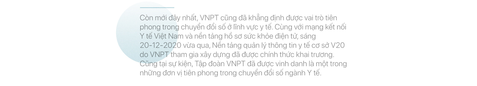 Năm 2020, Tập đoàn VNPT đã từng bước đặt những dấu chân vững chắc trên hành trình chuyển đổi số, thể hiện được vai trò dẫn dắt trong chuyển đổi số quốc gia. Đó là cơ sở vững chắc để VNPT tiếp tục triển khai các nhiệm vụ chiến lược, đưa Tập đoàn phát triển đúng tầm nhìn trở thành nhà cung cấp dịch vụ số hàng đầu tại Việt Nam và Trung tâm giao dịch số của khu vực châu Á.