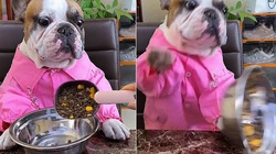 Sau khi được sen tậu cho bộ áo siêu ngầu cùng kính râm, chú chó cảm giác mình được lên chức 'đại ca' nên không còn sợ mèo bắt nạt nữa.