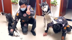 Husky giữa đêm chui lên giường đòi nằm ngủ với sen