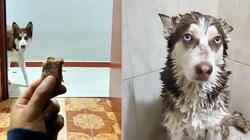 Giữa đêm, chú chó husky lủi thủi đi vào phòng, nhẹ nhàng kéo gấu bông ra ngoài rồi chui vào chăn đòi nằm ngủ cùng với sen khiến nhiều người xem thích thú.