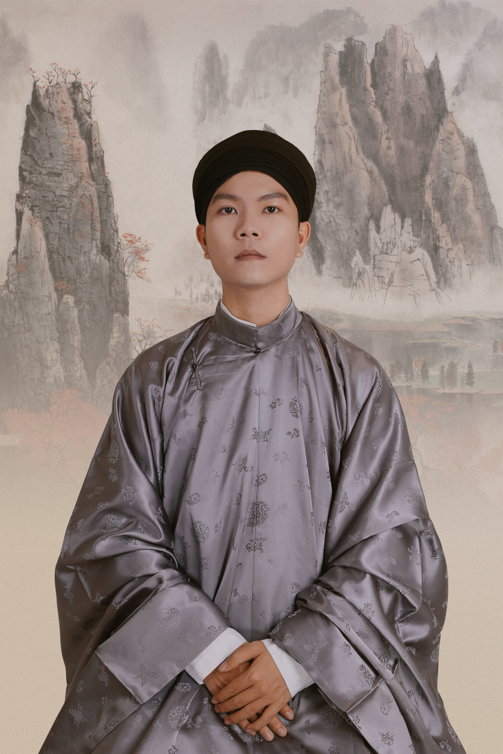 Hình ảnh Jang Nguyễn mặc áo tấc – loại trang phục truyền thống của Việt Nam thời Nguyễn – phía xa là mây mù bao phủ với những dãy núi trùng điệp nhấp nhô, mang đến cảm xúc hoài cổ trong lòng khán giả.
