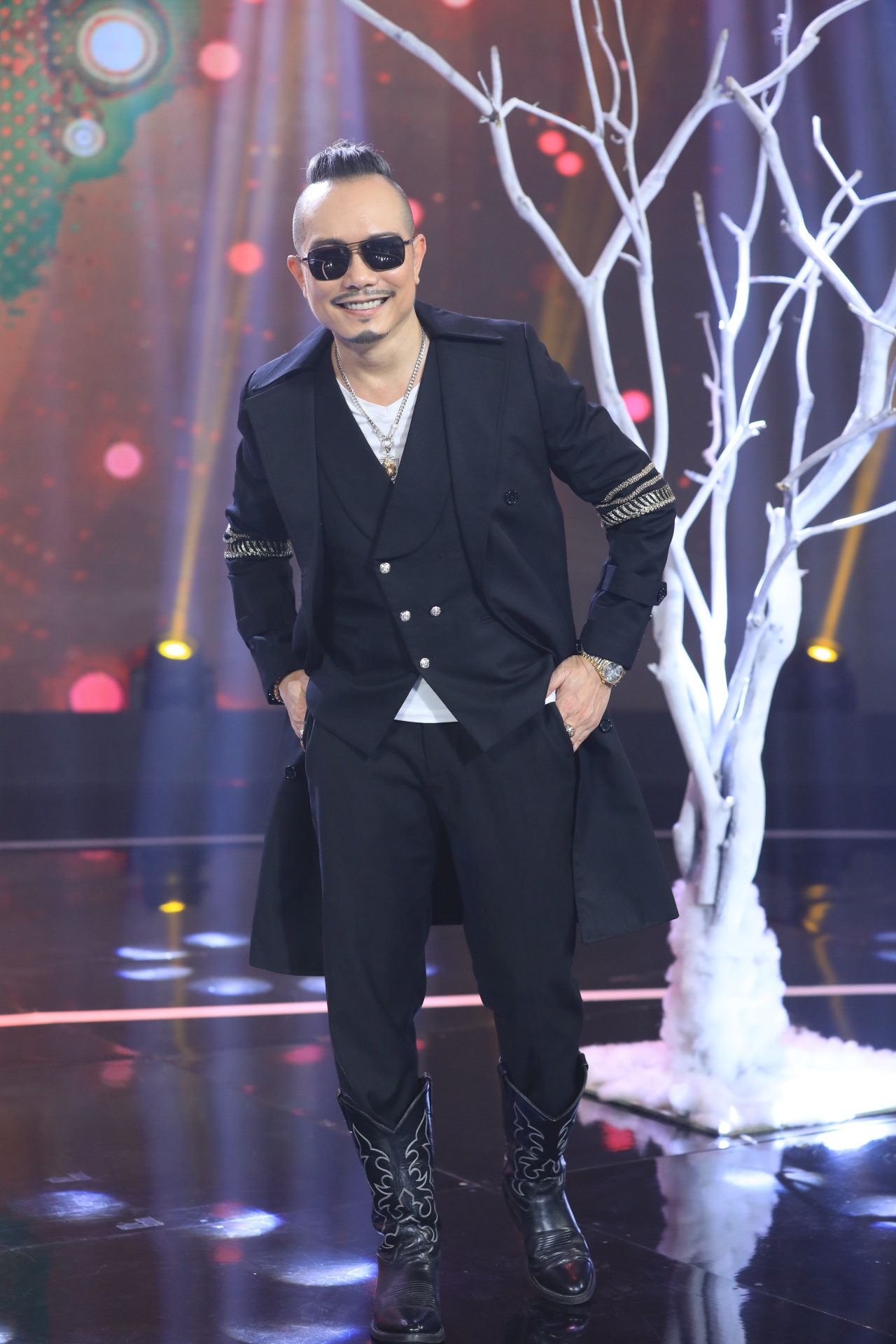 Nam ca sĩ Jimmii Nguyễn xuất hiện mà không có chiếc khăn quấn đầu thương hiệu.>>> Bảo Thy trao vương miện 'công chúa Vpop' cho Amee