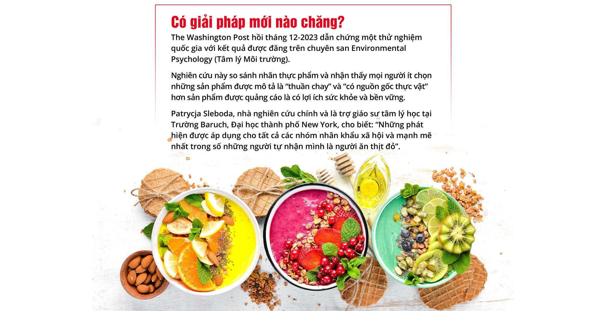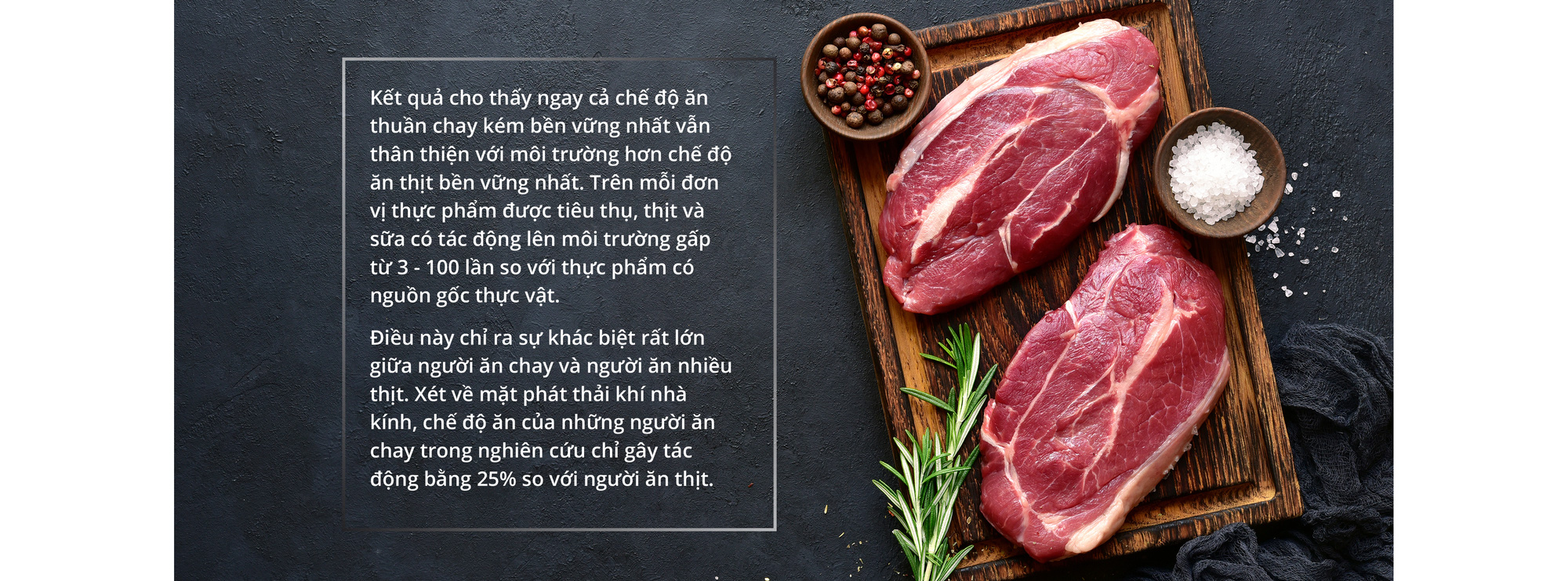 Một câu hỏi cũ, nhưng các nhà nghiên cứu vẫn liên tục đưa ra các câu trả lời mới. Chẳng hạn, một nghiên cứu được công bố trên tạp chí Nature Food tháng 7-2023 cho thấy tác động môi trường của chế độ ăn chay chỉ bằng 30% chế độ ăn nhiều thịt.