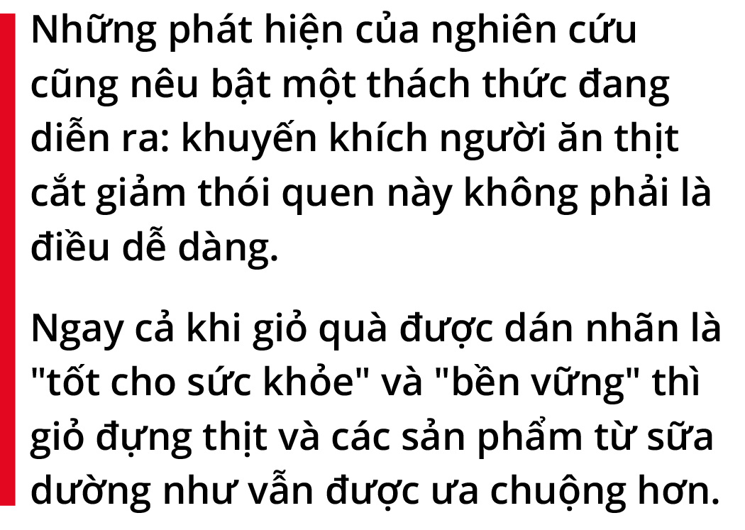 Điều này củng cố thực tế rằng "bất chấp xu hướng xoay quanh các sản phẩm thay thế thịt và sản phẩm từ thực vật, việc ăn thịt vẫn là tiêu chuẩn ở hầu hết mọi nơi trên thế giới", báo cáo Statista Consumer Insights nhận định.