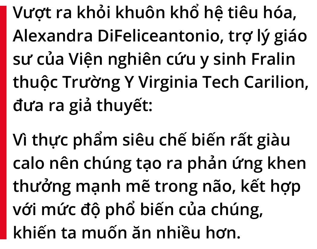Kết quả này dù xác nhận có mối liên hệ giữa thực phẩm siêu chế biến và việc tiêu thụ dư calorie, nhưng lại không thể chỉ ra lý do tại sao những người trong nhóm thực phẩm siêu chế biến lại ăn nhiều hơn.