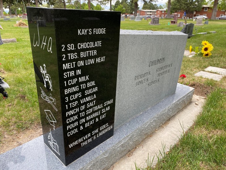 Khắc công thức làm bánh sô-cô-la lên bia mộ
